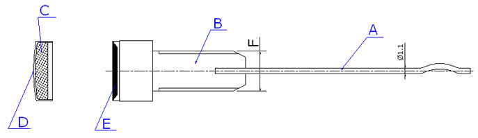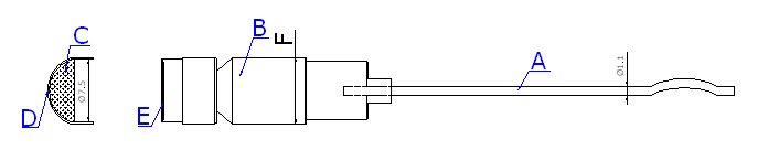 | Tipo | F (mm) | A | B | C | D | E |