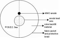 El ánodo contiene polvo de coque, de esta forma no necesita mas rellenos siendo fácil y conveniente la instalación. La esencia del ánodo flexible de MMO/Ti (ánodo mixto de óxido metálico)esta en reemplazar el cable original que se usa como polímetro conductivo, por un alambre de titanio. El cable MMO tiene excelentes propiedades químicas. Cuando el polvo de coque se consume totalmente, el ánodo de MMO se puede usar como ánodo auxiliar. La vida útil de este ánodo es mas larga comparada con otros sistemas de protección catódica.