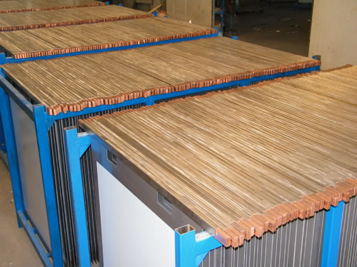 En el desarrollo del diseño de un sistema permanente de cátodos de acero inoxidable, es necesario asegurar las condiciones óptimas para el proceso de electro-obtención. Durante la puesta en operación del proceso de electro-obtención mantener los estándares y el mantenimiento es esencial. Los cátodos de acero inoxidable están hechos para una larga vida útil en los proyectos de obtención del zinc, cobre y níquel nacional e internacionalmente. El cátodo de acero inoxidable tiene excelentes propiedades eléctricas y mecánicas y es empacado en cajas de madera especiales para viaje por mar evitando la deformación del producto.